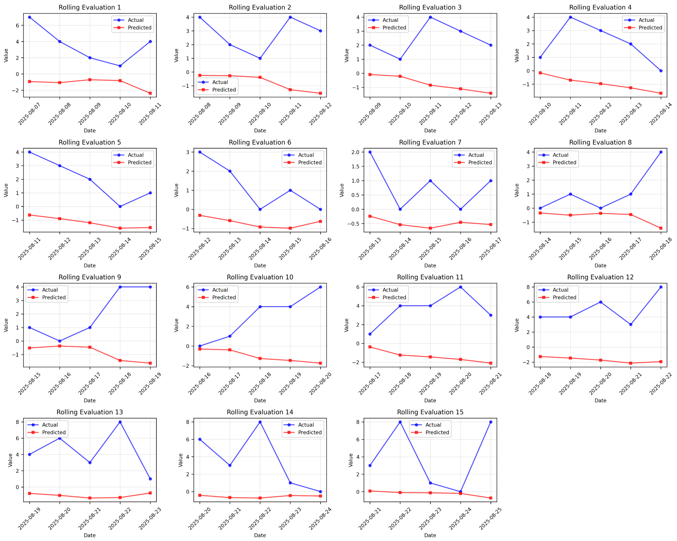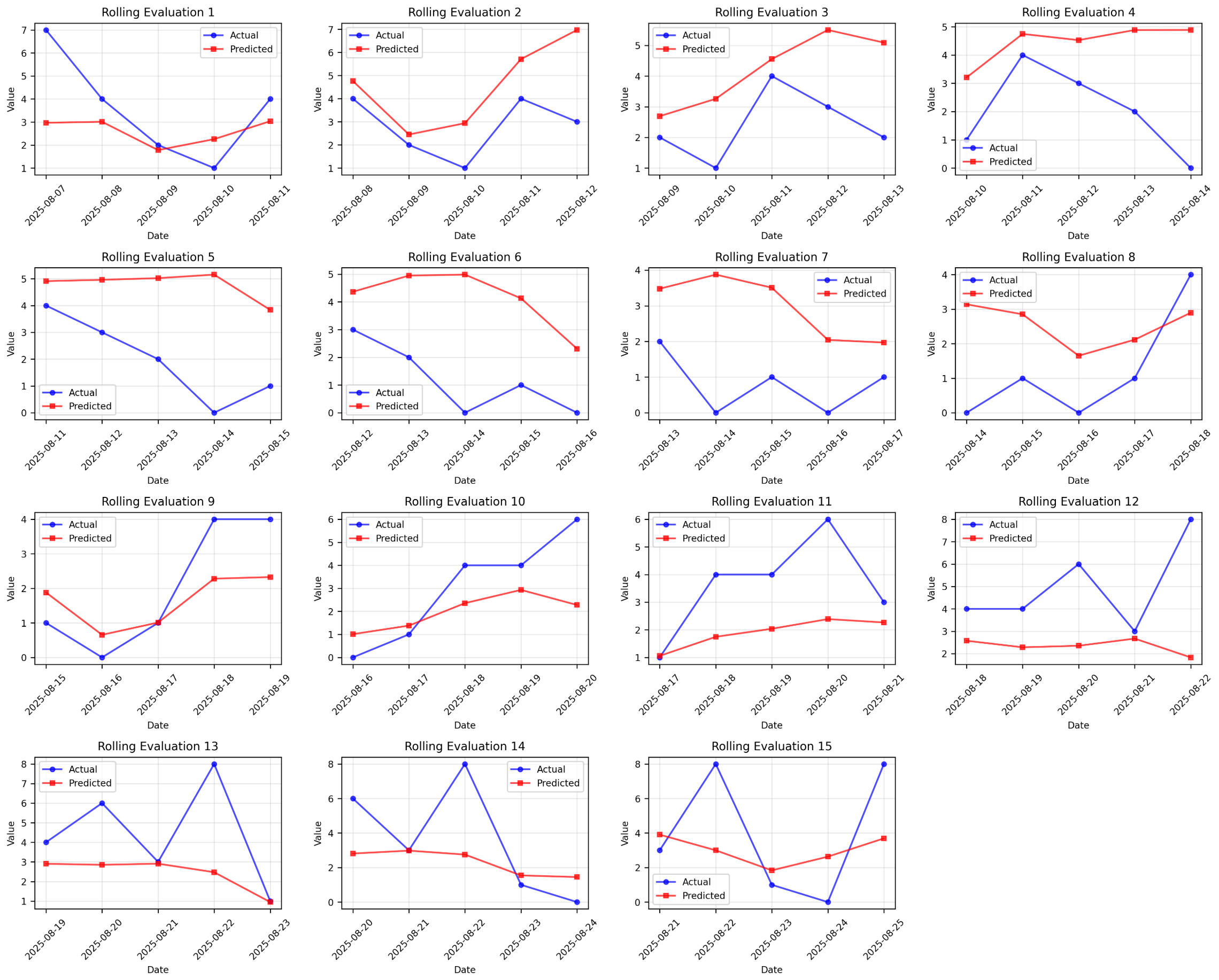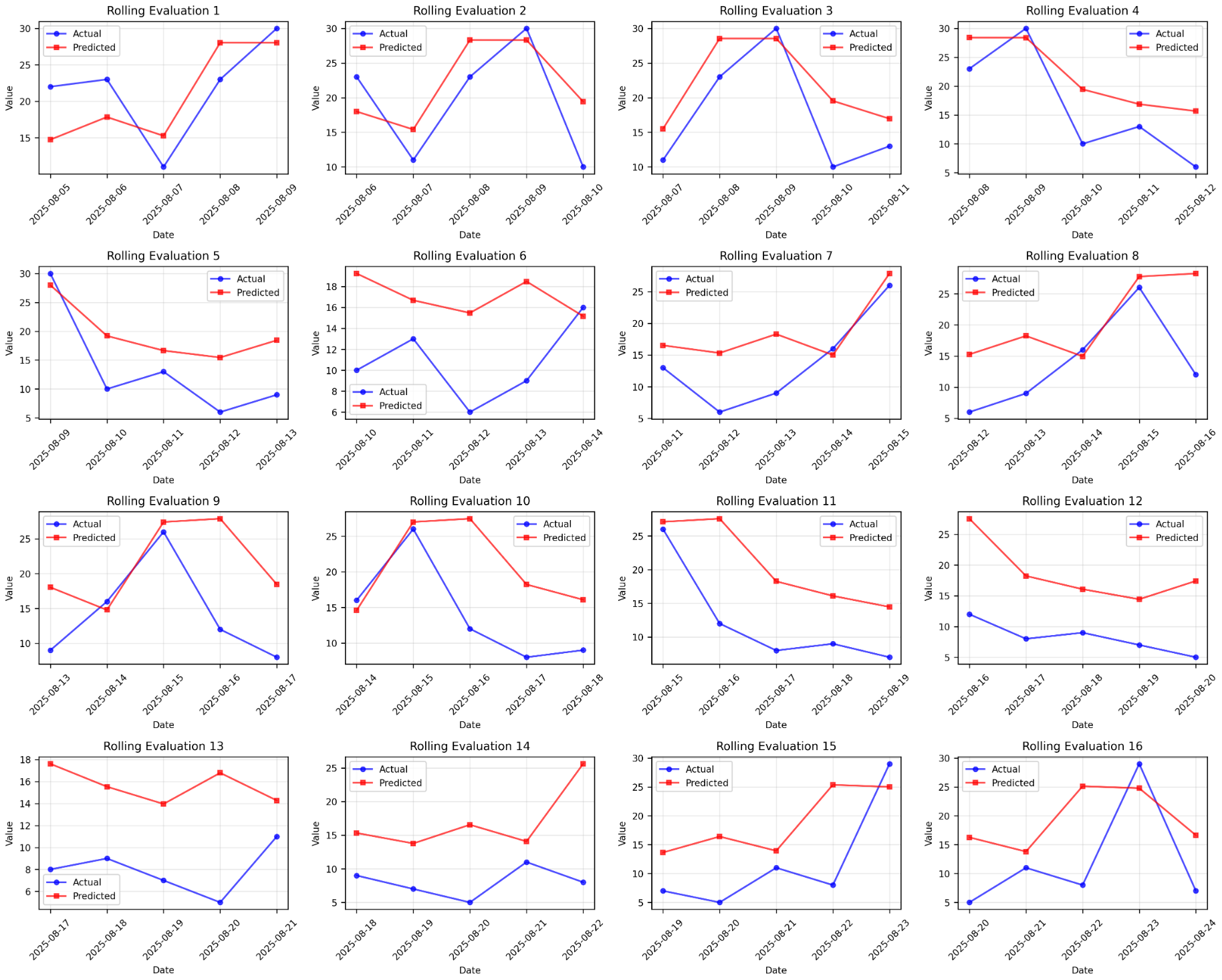 - Prophet showed robustness to noise. Branch 3 had severe noise before the evaluation time so that both TimesFM and the Daily prediction of Prophet produced poor results. Besides, hourly prediction of Prophet is quite robust.